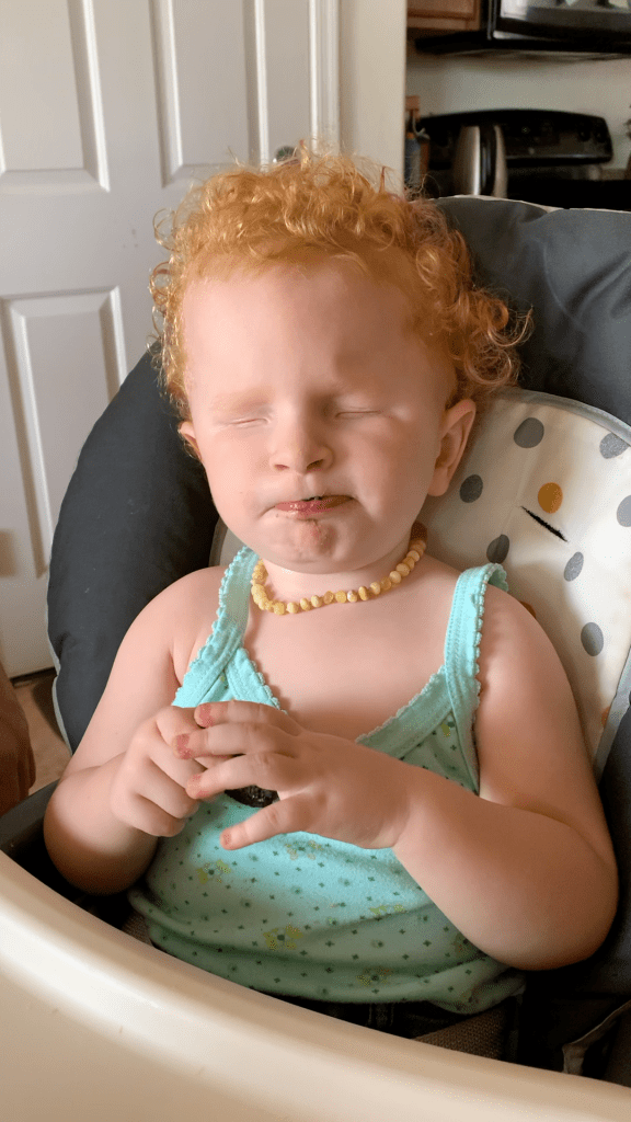 Eleanor has food texture issues. She only eats pureed foods so far. She can take very little texture in her pureed foods before gagging. One issue is that she doesnt chew. She’s never done that motion & I dont think she gets how or why to do it so far.